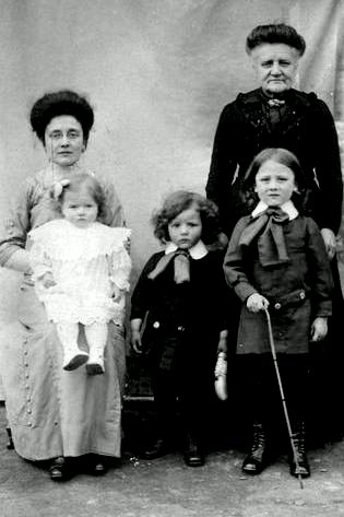 (de g. à dr.) Renée sur les genoux de Louise, Georges et Michel.